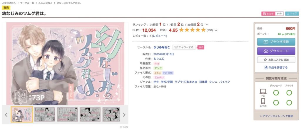 少女漫画好き達も大満足で、DLsiteについている評価は4.7(2025年9月現在)と行列スイーツ店並み!